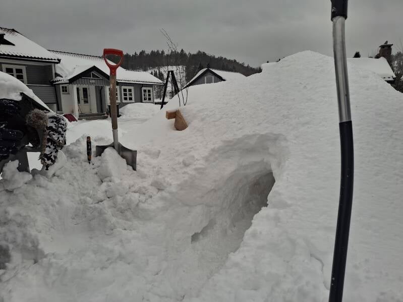 Op oudejaarsdag hebben we met Kenth (een vriend van Gerard) wat verschillende huizen in en om Treungen bekeken. Was echt heel grappig. Een voor ons onbekende man, maar meteen verhalen alsof we elkaar al jaren kenden. Haha! Hij is ook even bij ons in de auto gestapt om ons verschillende huizen in de omgeving te laten zien en wist overal wat over te vertellen. Bij één huis lag er een enorm berg sneeuw in de tuin, waar nog niemand doorheen gelopen had. En dus enorm gelachen om daar doorheen te banjeren. Want ja, wij zijn toch (nog) helemaal niet gewend om tot en met je knieën in de sneeuw weg te zakken.